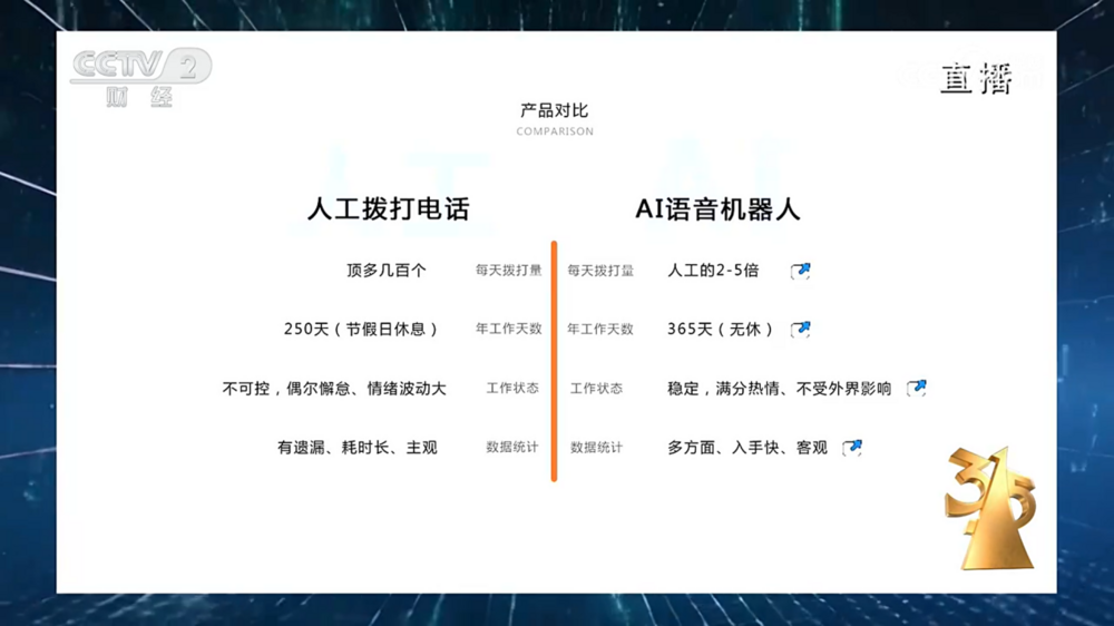 一台智能机器人年成本仅约1万元,日均拨号量可达上千次,远超人工客服。优音通信有限公司工作人员更直言:“今天打10万个电话,一次打100到200个。”
