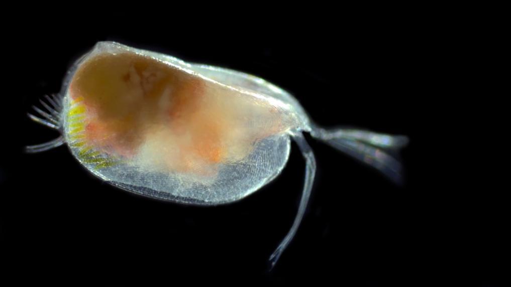图为考察队员在阿蒙森海捕捞到的一种浮游动物,介形亚纲的海荧(显微镜照片)。新华社发(迟旭朋摄)
