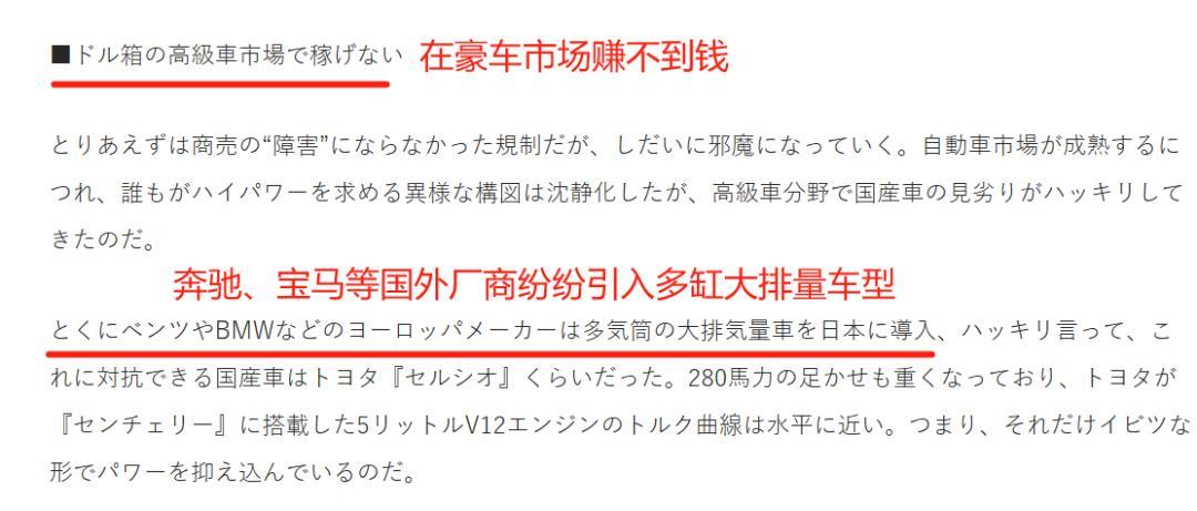 在一些业内人士眼中,这条规定已经把日本车搞成了畸形产品,比如说天皇和黑帮大佬们钟爱的丰田世纪,5.0排量的V12发动机,听上去就霸气十足,结果马力只有可怜的280匹,而且是完全靠着软件限制在这个数字的,同时期的欧美竞品,马力已经来到了400匹甚至更高,纯属吊打。