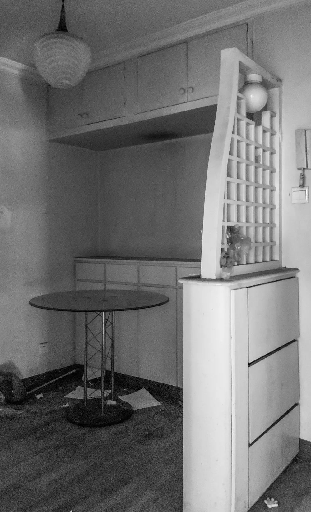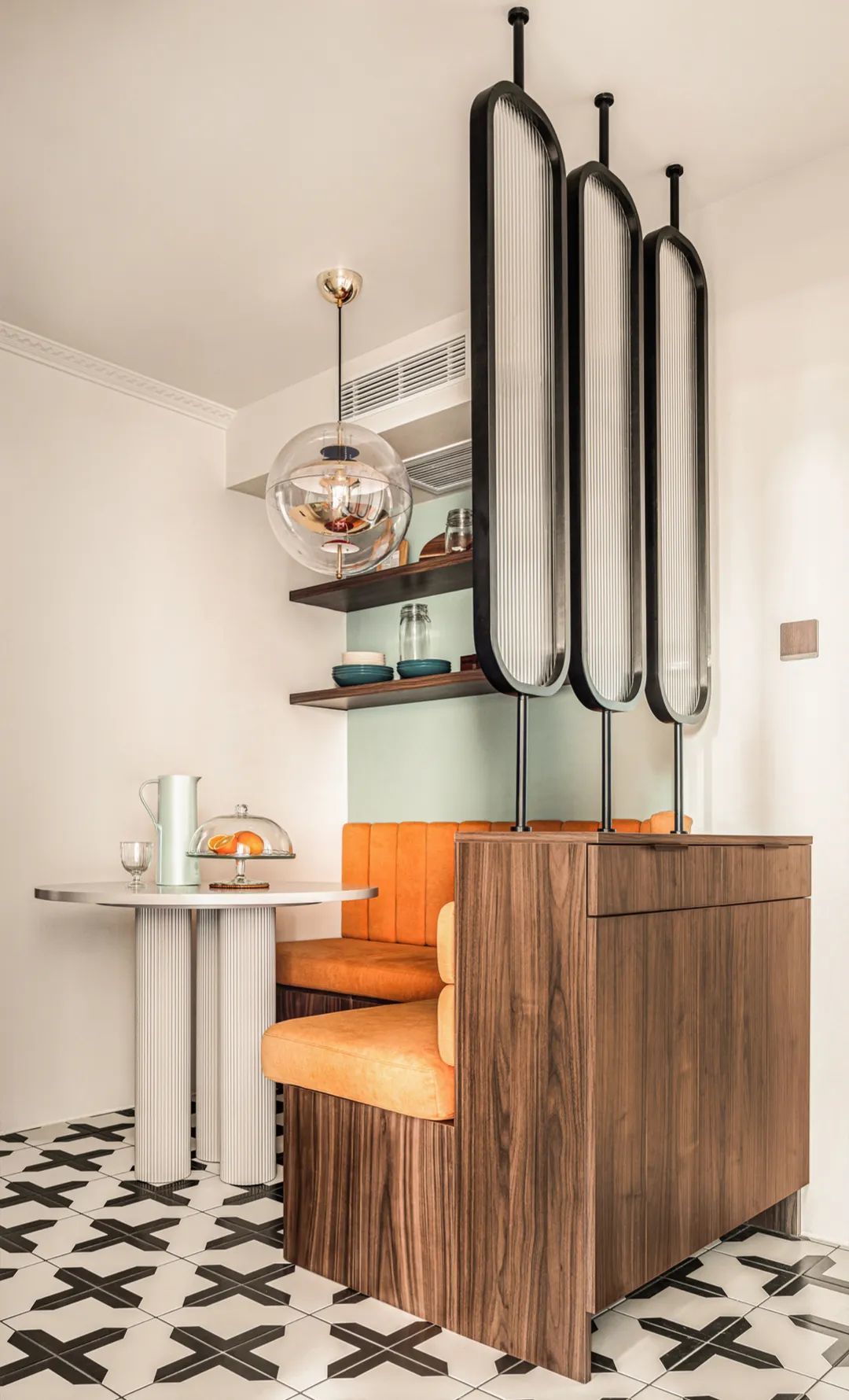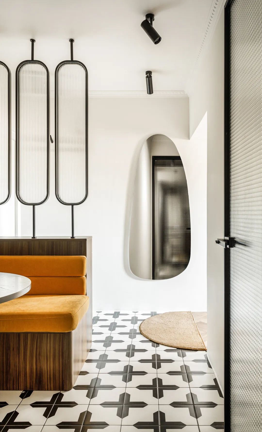 利用卡座新增玄关柜,玻璃屏风分割空间