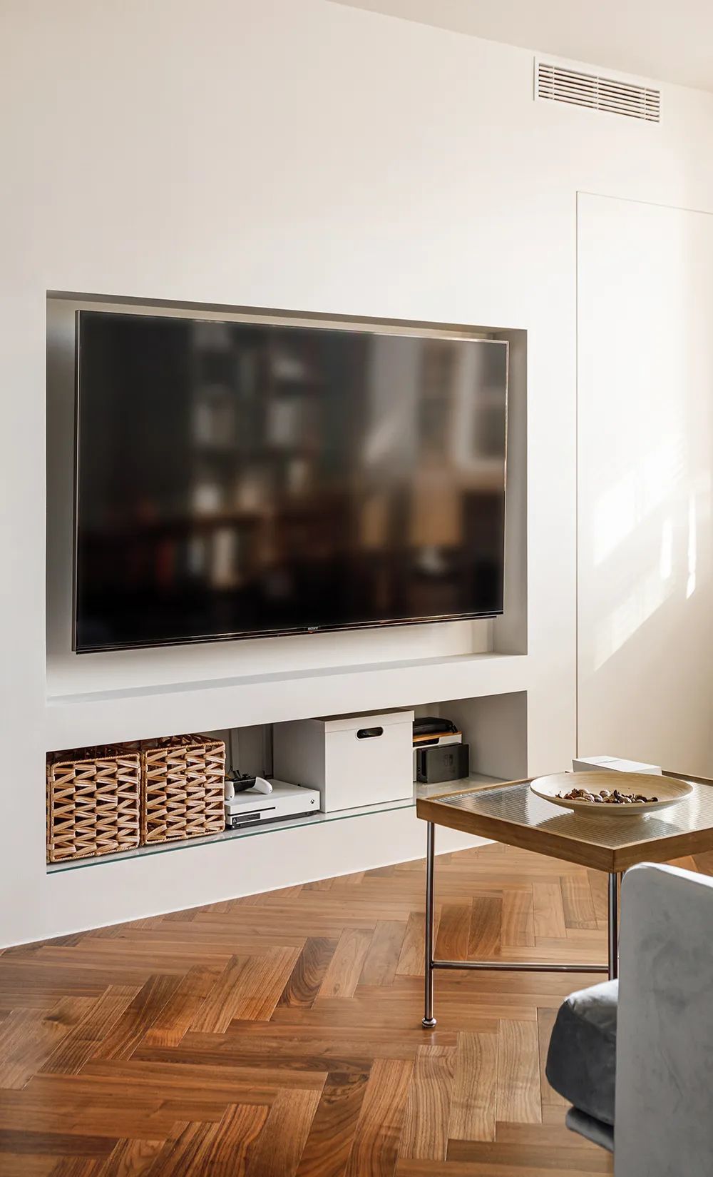 电视墙壁龛储物细节