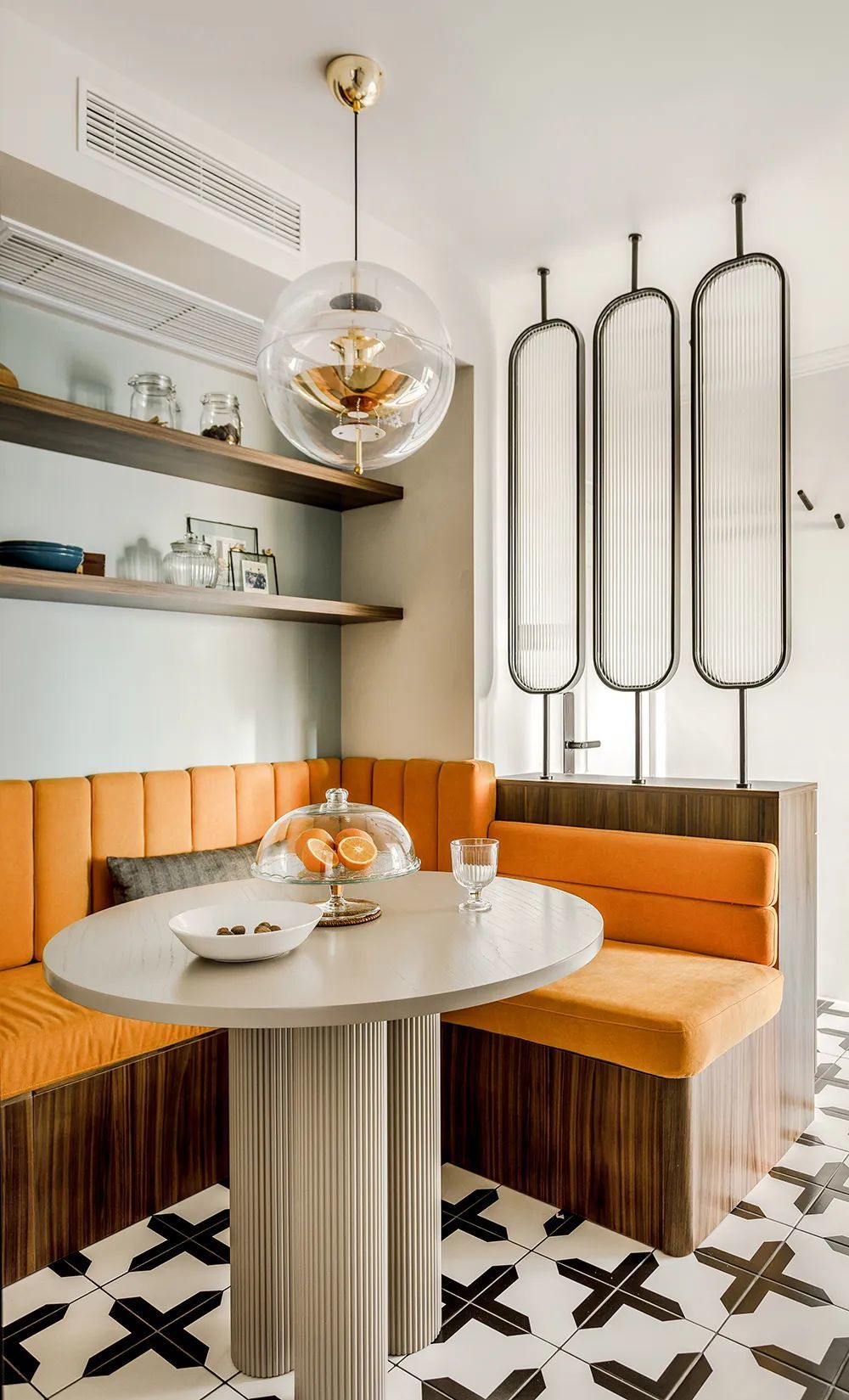 卡座代替餐椅,形成亲密围合布局