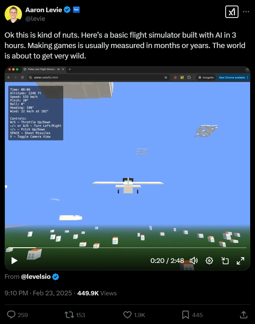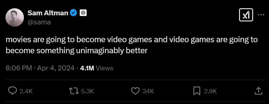 这一点有点难以理解,但尤其是随着人工智能在自动化代码生成和生成 3D 资源方面越来越好,自动化现有的游戏设计流程(使用虚幻引擎或 Unity 等游戏引擎)——包括即时生成相关的 3D 资源和纹理——可能会优于概率实时视频生成模型。