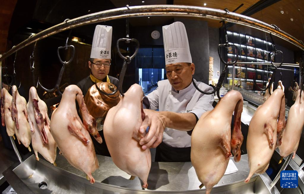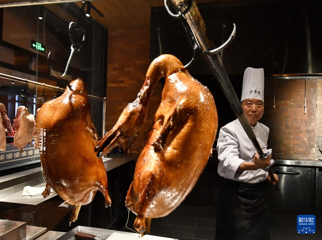 北京烤鸭是北京的美食名片。2008年烤鸭技艺(全聚德挂炉烤鸭技艺)被列入第二批国家级非物质文化遗产名录,如今全聚德挂炉烤鸭这项技艺已经经过了七代师徒传承。