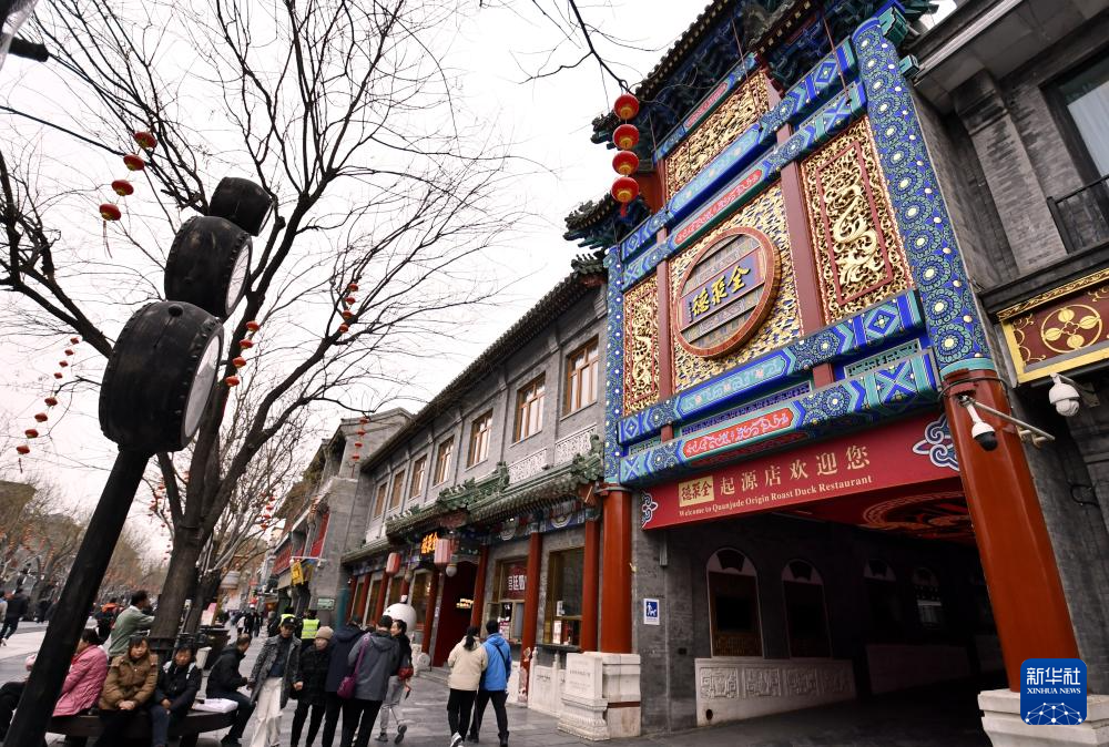 位于北京前门步行街的全聚德起源店(3月14日摄)。