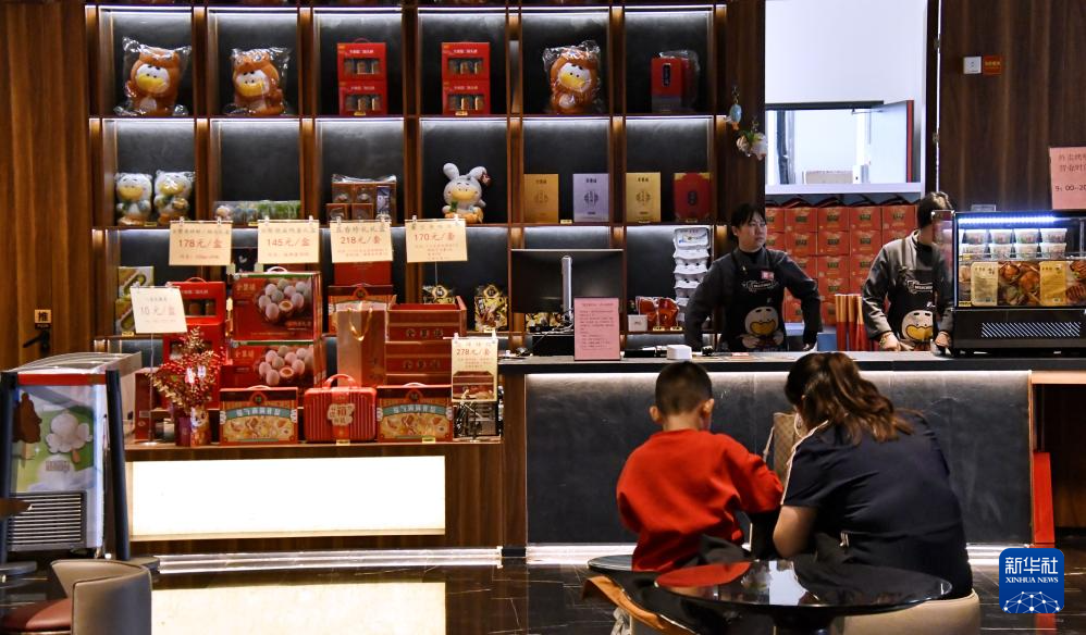 这是全聚德烤鸭店和平门总店大厅内的挂炉烤鸭文创店(3月13日摄)。