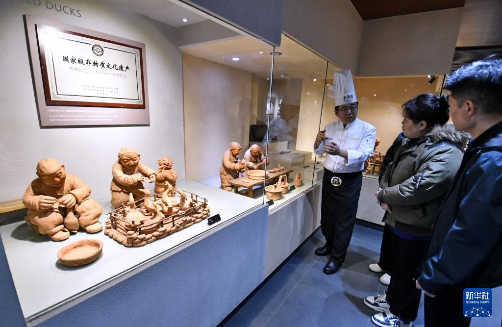 顾客在全聚德烤鸭店和平门总店的全聚德博物馆内参观(3月13日摄)。