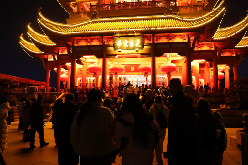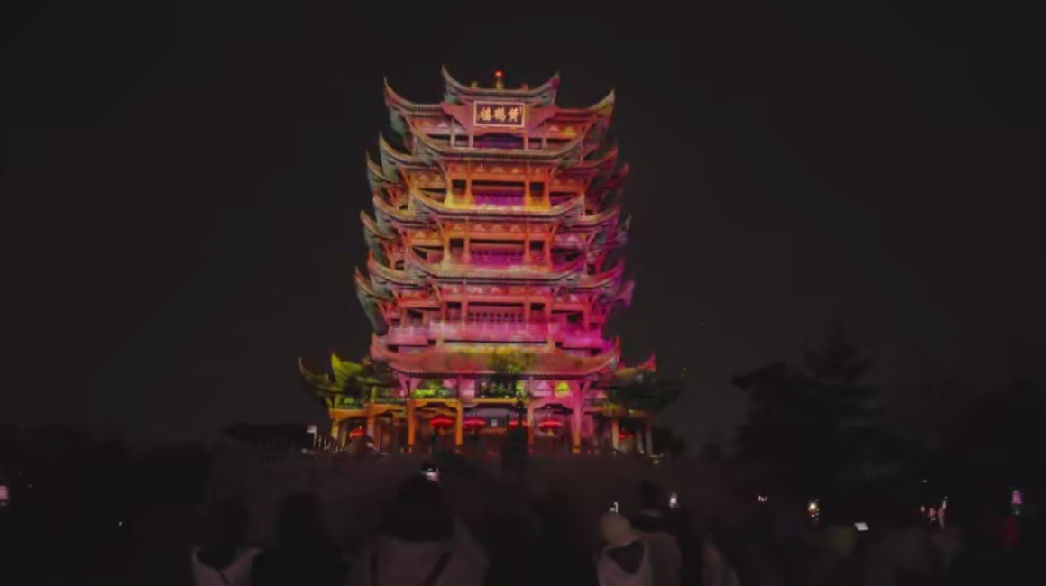 据介绍,上周末共有近万名游客夜游黄鹤楼,自樱花季启动以来,《夜上黄鹤楼》游客人数同比增长了约50%。