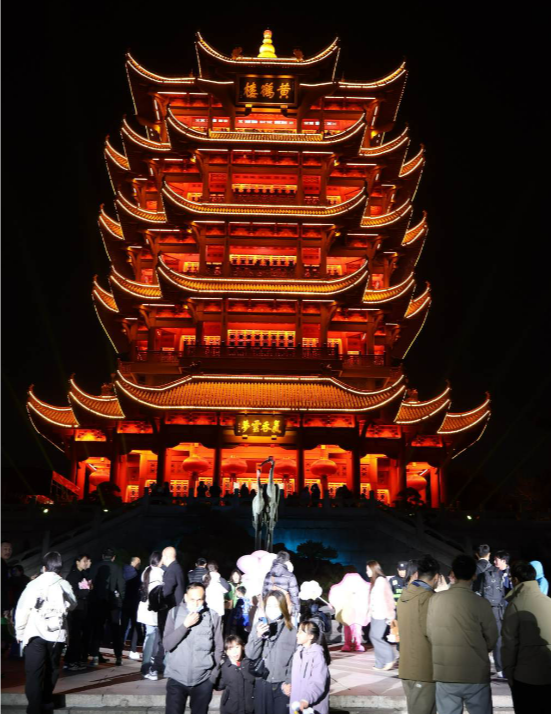 游客夜游黄鹤楼。图/九派新闻曾怡婷