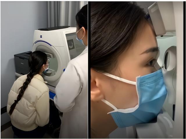 (3)头部靠紧机器,额头跟下巴需要贴紧仪器,不能随意移动头部