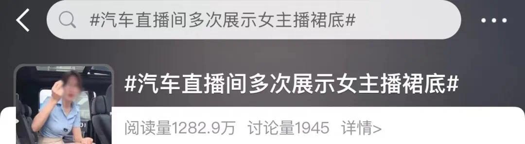 最近一条有关于“汽车直播间多次展示女主播裙底”的热搜上了新闻。