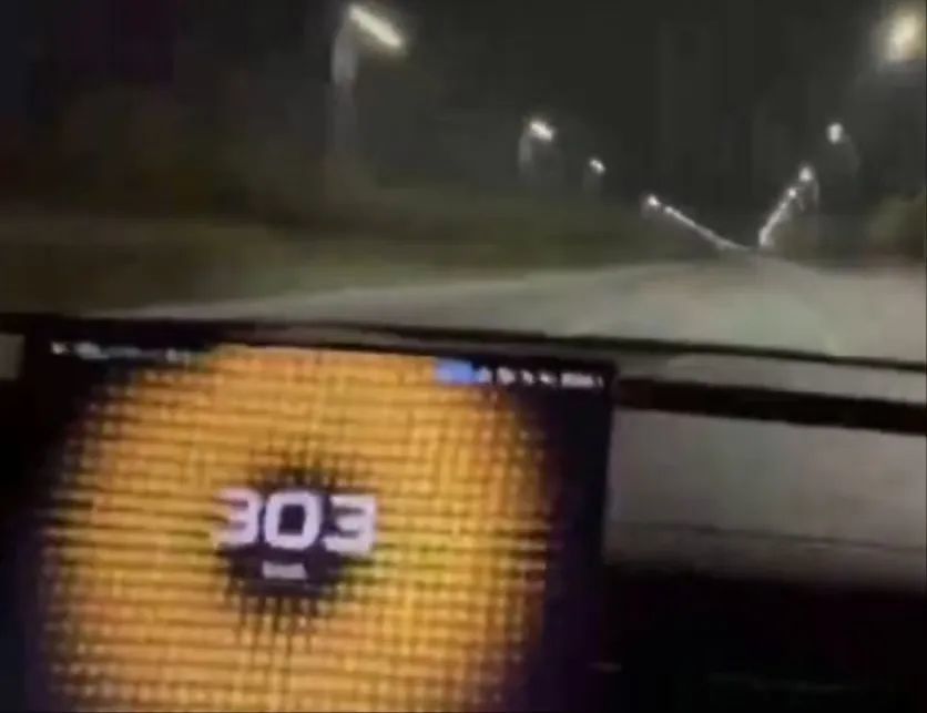 深夜,有人开小米SU7 Ultra在城区道路飙车。视频里可以看到,屏幕显示车速从0km/h飙升至303km/h。
