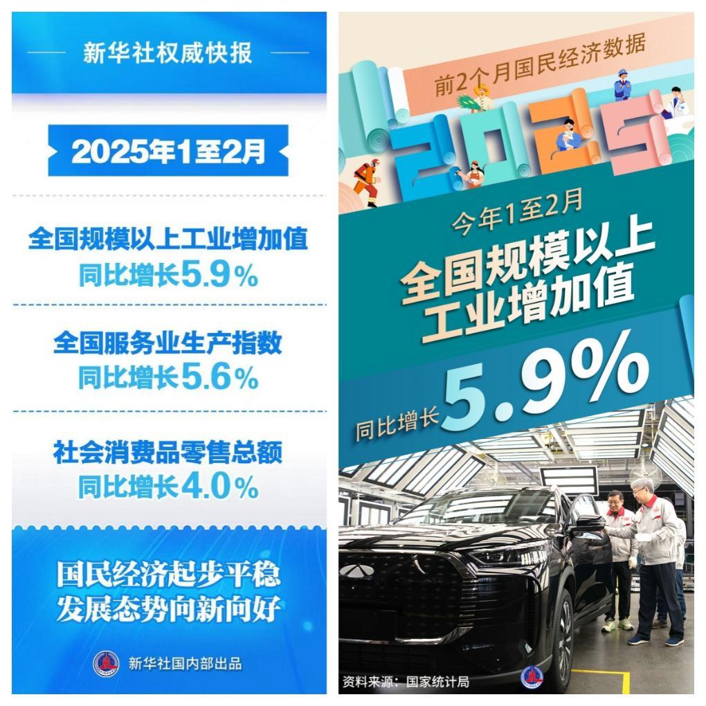 国家统计局新闻发言人、国民经济综合统计司司长付凌晖表示,今年前2个月,工业服务业较快增长,消费投资继续改善,就业形势总体稳定,新质生产力成长壮大,经济运行起步平稳,发展态势向新向好,展现中国经济强大韧性。