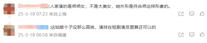 对于热搜话题,不少网友纷纷表示了对余茵的支持:“身高和外貌并不重要,作为演员,最重要的应该是演技好。”