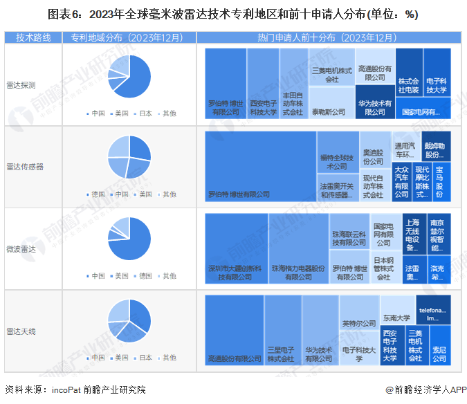 我国毫米波雷达产业近年来发展迅速,已成为智能汽车和自动驾驶领域的重要支撑。从专利地域分布来看,中国在雷达探测、微波雷达等细分技术领域创新较为活跃,专利数量全球第一。