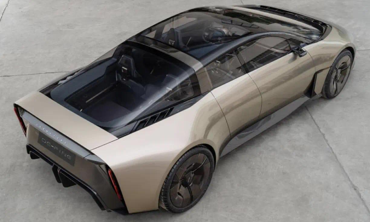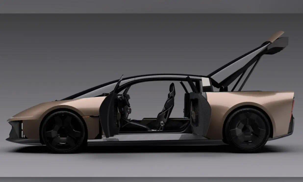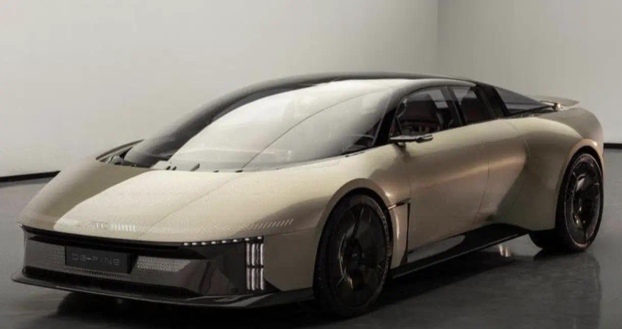 外观上,DE-FINE 采用了极具动感的流线型车身设计,整体造型低矮且宽体,流畅的线条从车头一气呵成延伸至车尾,尽显优雅与速度感。前脸的灯组设计科技感爆棚,扁平化的造型搭配竖向排列的 LED 灯组,点亮时辨识度极高,前唇的扁平设计进一步强化了整车的运动氛围。