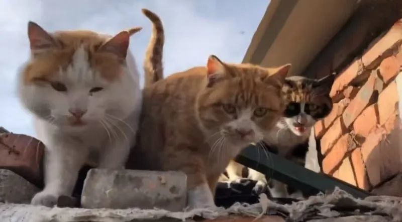 这天,她像往常一样,带着猫条去外面随机投喂流浪猫,结果被屋顶的三只小猫笑yue了。