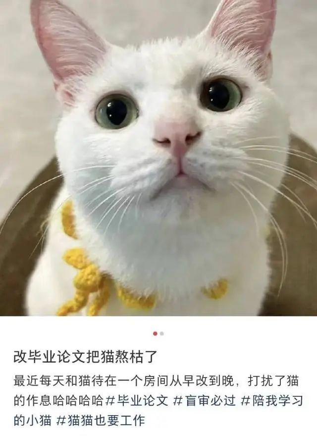 一位小姐姐最近在没日没夜地改论文,而她的猫也陪她待在同一个房间里,打扰到了猫猫的休息,于是把猫给熬枯了。