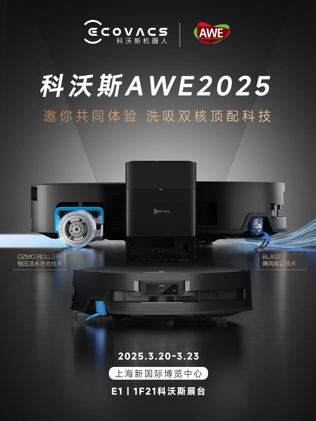 3 月 18 日消息,AWE 2025(2025年中国家电及消费电子博览会)开幕在即,科沃斯作为服务机器人领域的领军者,将加入到这场年度盛会当中。将携“洗吸双核顶配科技”登陆上海新国际博览中心。