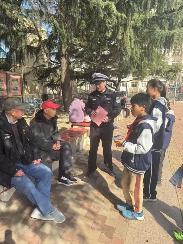 在教师与交警的带领下,红领巾志愿者手持倡议书,化身为文明出行的“传播者”。他们主动走向过往居民,用稚嫩却坚定的声音耐心讲解文明出行知识。每一次交流,都是文明的传递;每一份倡议,都承载着孩子们对美好出行环境的期待。在这个过程中,孩子们学会了如何与人沟通,增强了社会责任感,更将文明出行的理念传递给身边的每一个人,让文明之风吹遍社区的每一个角落。