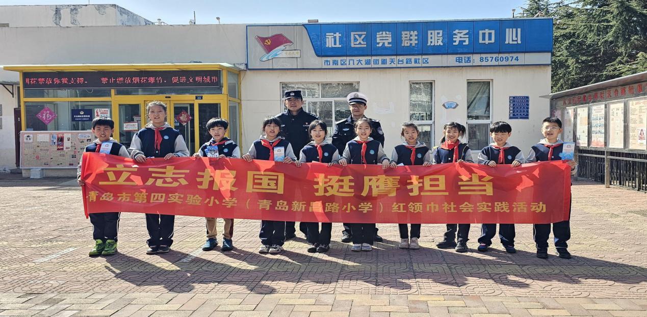 为积极响应市南区文明办 “礼让斑马线 文明你我他”主题活动号召,近日,八大湖街道办事处天台路社区携手市南交警大队,与青岛市第四实验小学(青岛新昌路小学)共同奏响文明出行的和谐乐章。此次活动中,四年级的“红领巾志愿者”们深度参与,以实际行动诠释文明内涵,在社区掀起文明出行新风尚。