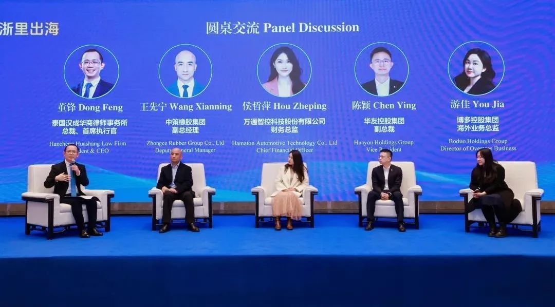 在圆桌交流环节,泰国汉成华商律师事务所主任董锋、华友控股集团副总裁陈颖、中策橡胶集团副总经理王先宁、万通智控科技公司财务总监侯哲萍、博多控股集团海外业务总监游佳等嘉宾畅所欲言,分享了各自走出去和投资两国的经验,现场气氛热烈。