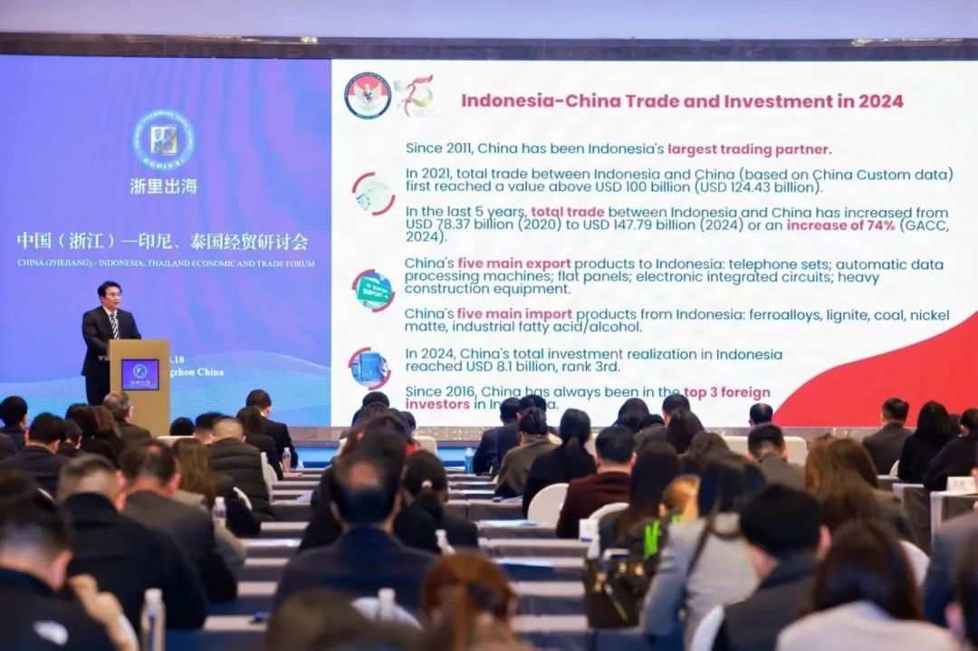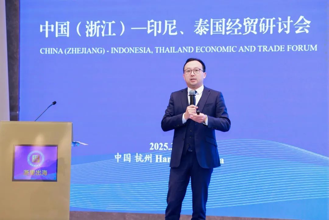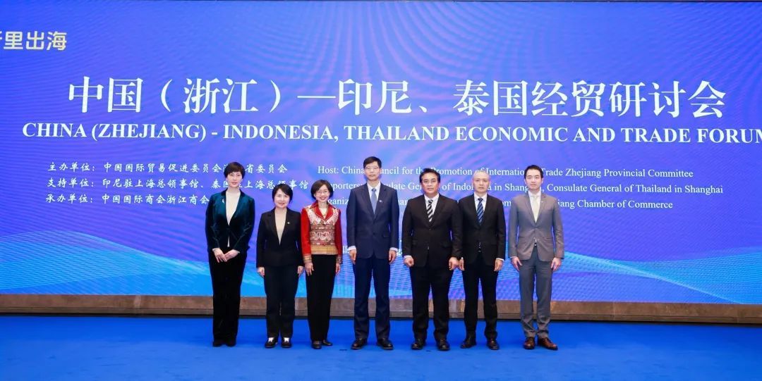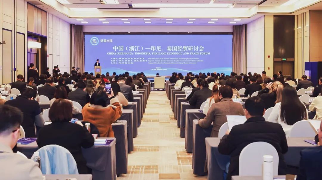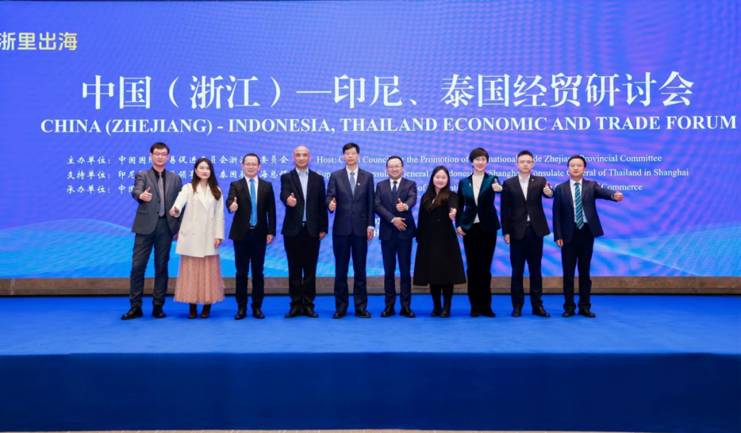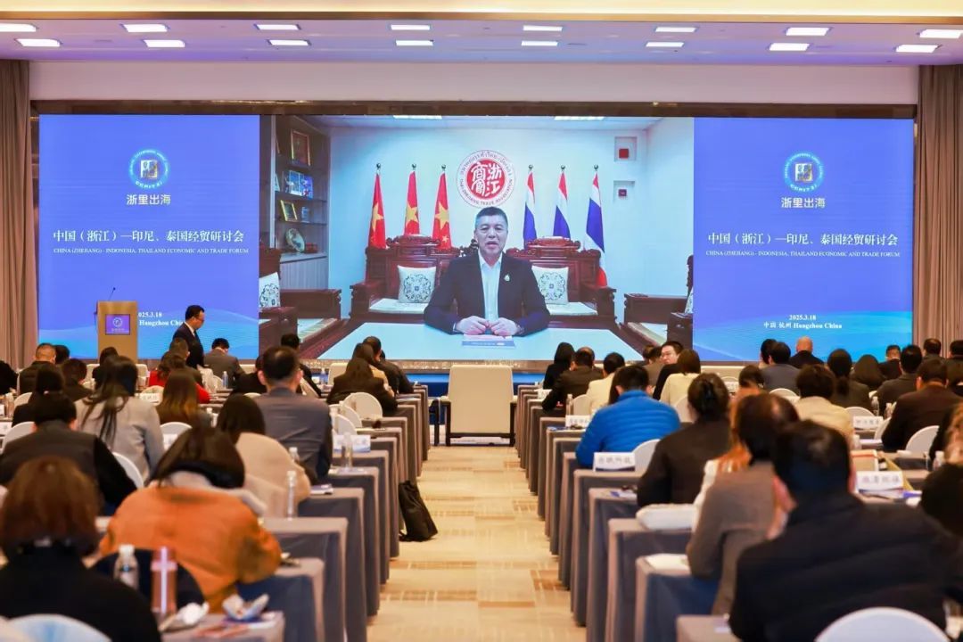 为助力浙江企业更好地赴印尼、泰国开展贸易投资,3月18日,“浙里出海”中国(浙江)-印尼、泰国经贸研讨会在杭州成功举办。浙江省贸促会、浙江省国际商会会长陈建忠,浙江省外办二级巡视员施华忠,印尼驻上海总领事邯伯盼,泰国驻上海总领事彬娜·安平乐出席会议并致辞,省贸促会、省国际商会副会长严佳主持会议。企业代表、相关机构、银行及媒体等近200人参加。
