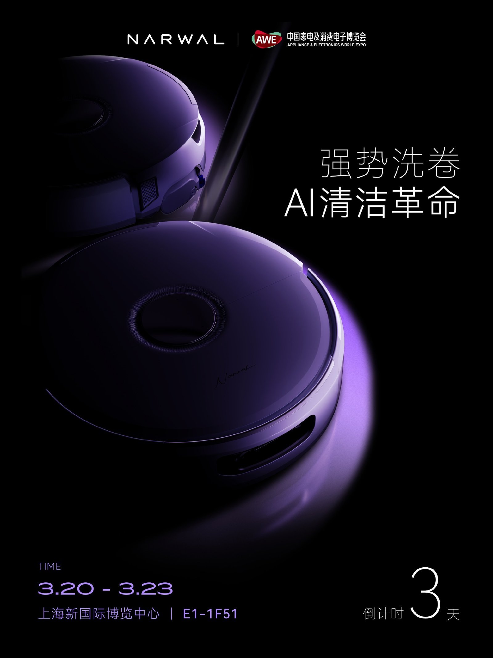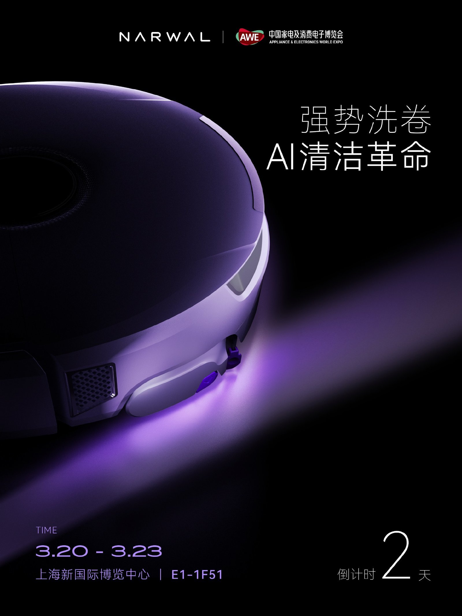 3 月 17 日,云鲸开启了自家新品逍遥 002 的预热,并宣布将携全新 AI 新品亮相 AWE2025 中国家电及消费电子博览会。