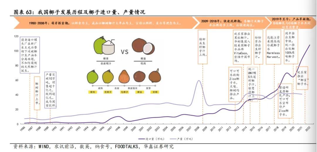 我们多方了解,行业所面临的长期挑战主要分为两方面:一是上游需要保证椰子产能的稳定供应,二是下游品牌需要继续提升消费者的品类认知度。
