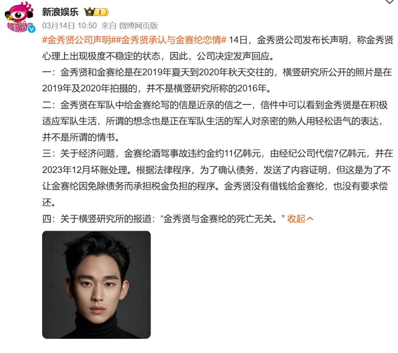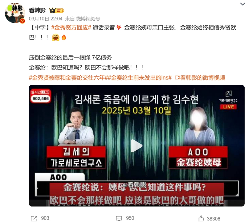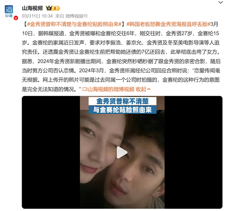 然而就在3月10日,沉默许久的金赛纶家属突然发声,将矛头直指“隐身”许久的金秀贤。