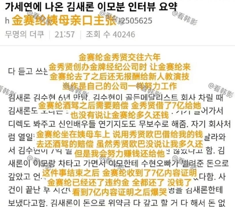 彼时两人明面上的交集,是金赛纶曾签约过金秀贤成立的经纪公司,关系如何,外人并不清楚,更不会将金赛纶的死和他联系到一起。