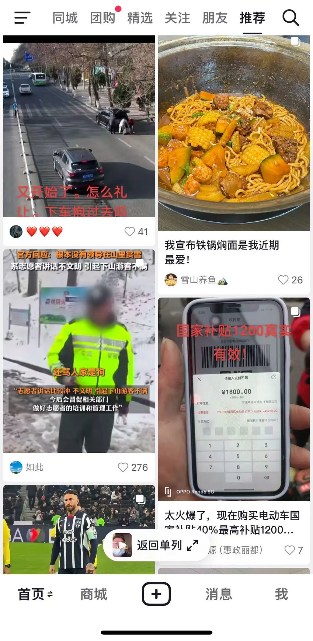 虽然有一部分短图文内容还是会进入到单列视频流的推荐序列中,但两个信息流的主体基本保持了互不干扰的平行状态。视频用户除了会觉得屏幕上多了一个按钮比较碍眼,几乎不会有体验上的影响。而当一部分用户尝试切换到双列信息流时,会有进入另一个产品的感觉。
