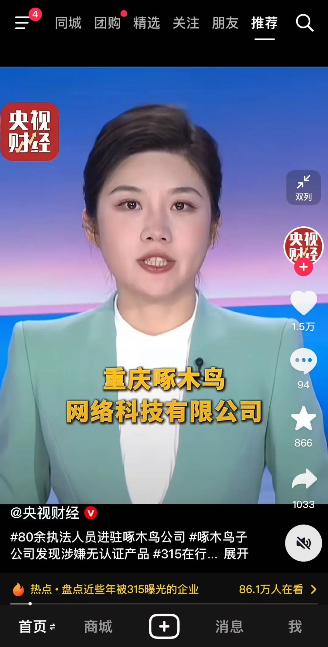 新的变化中,有用户的双向箭头标志从推荐按钮下面,被挪到了右列视频内容作者头像的上方。新的按钮中还增加了「双列」字样,给到用户更为明确的双列切换提醒。在这种模式下,点击推荐按钮已经不能实现单双列切换。