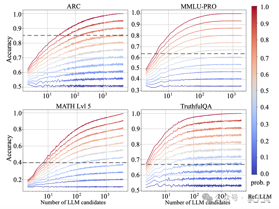 少量的LLM候选已经足够。从Model-level Scaling Up现象示意图可以看到3-10个LLM候选的时候已经可以达到非常不错的性能。而且此时的部署成本并不高,具有很高的性价比。