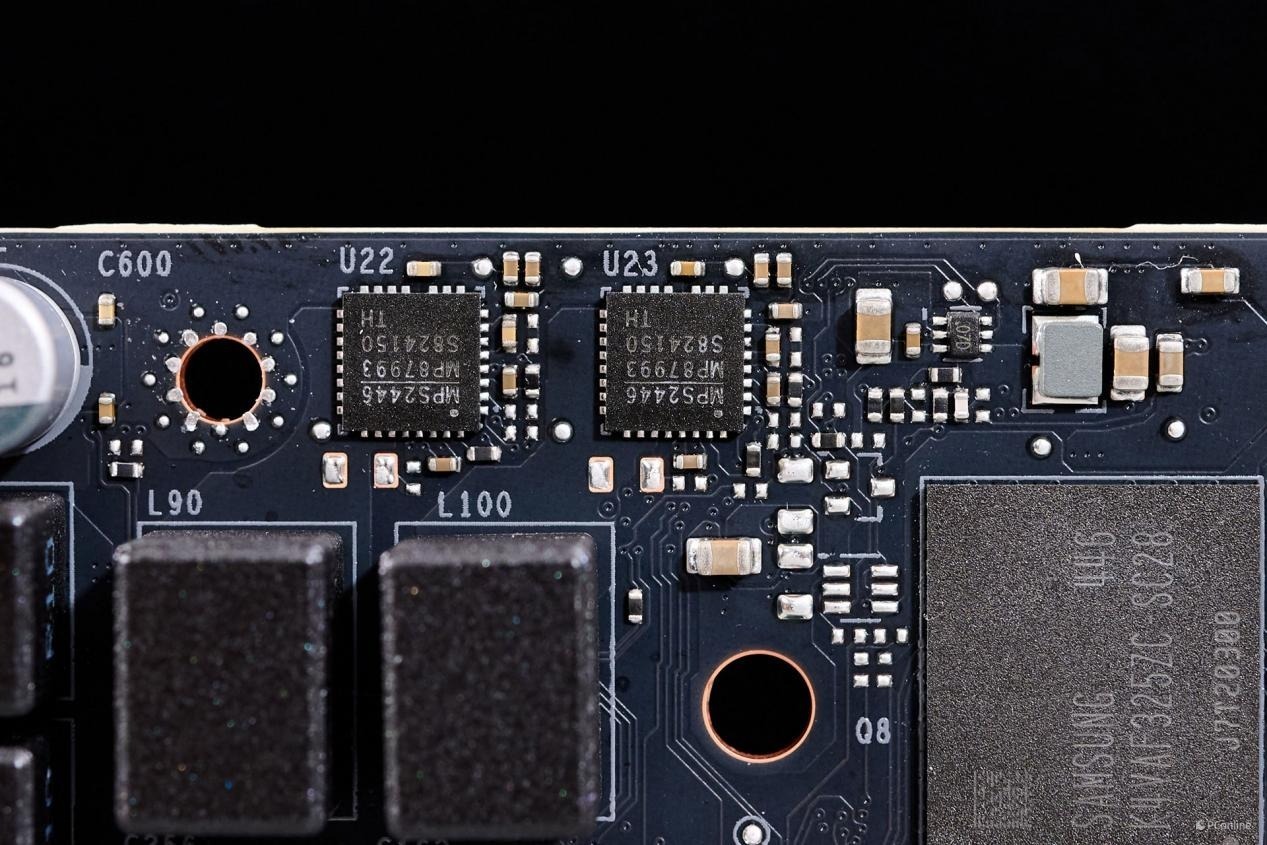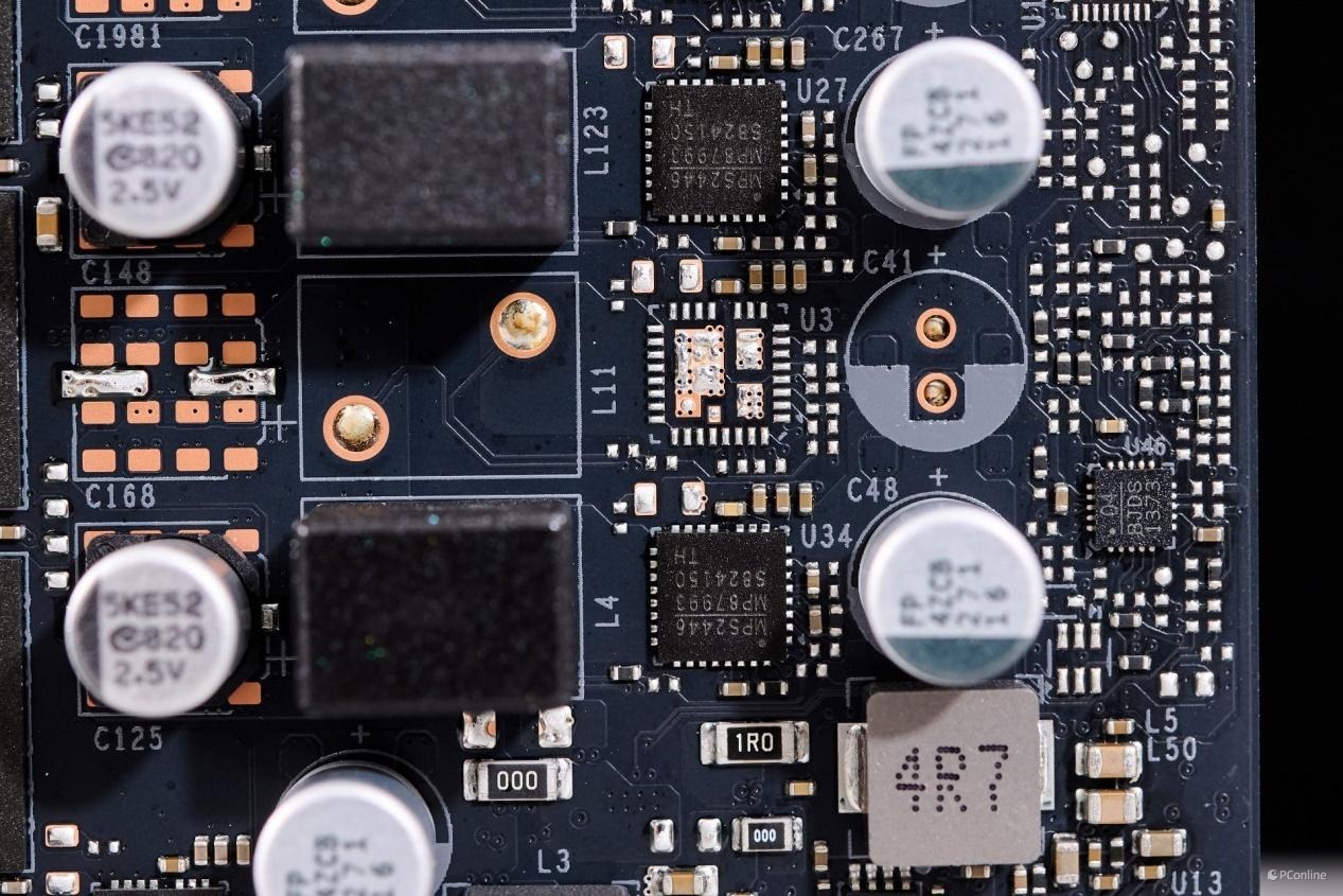负责实际功率调节的IC型号为MP87993,这款芯片在RTX 50系的产品中大量出现。