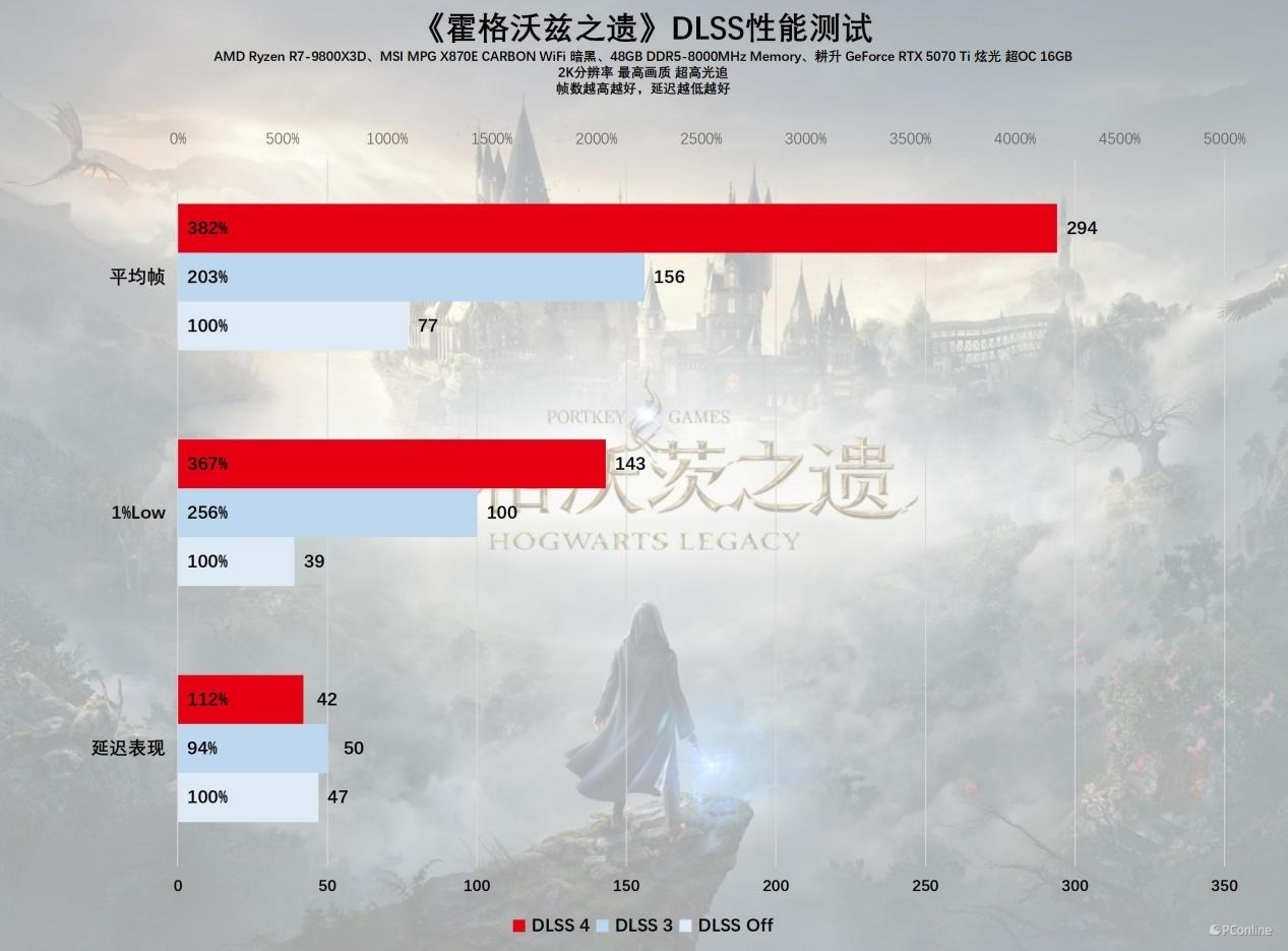 让我们再次审视《霍格沃兹之遗》,这是一款经过良好优化的游戏,即便在不启用DLSS的情况下,也能确保游戏的流畅运行。使用耕升RTX 5070 Ti 炫光超OC显卡,在2K分辨率下关闭DLSS时,游戏的平均帧率可达77 FPS,但需要注意的是,1%的最低帧率仅为39 FPS,这表明在游戏过程中可能会遇到一些卡顿。启用DLSS 4后,游戏的流畅度显著提升,1%的最低帧率飙升至143 FPS,彻底消除了卡顿现象。对于那些追求极致画质的玩家,可以考虑将帧生成技术调整至【2X】模式,以获得更接近原生分辨率的游戏画面。