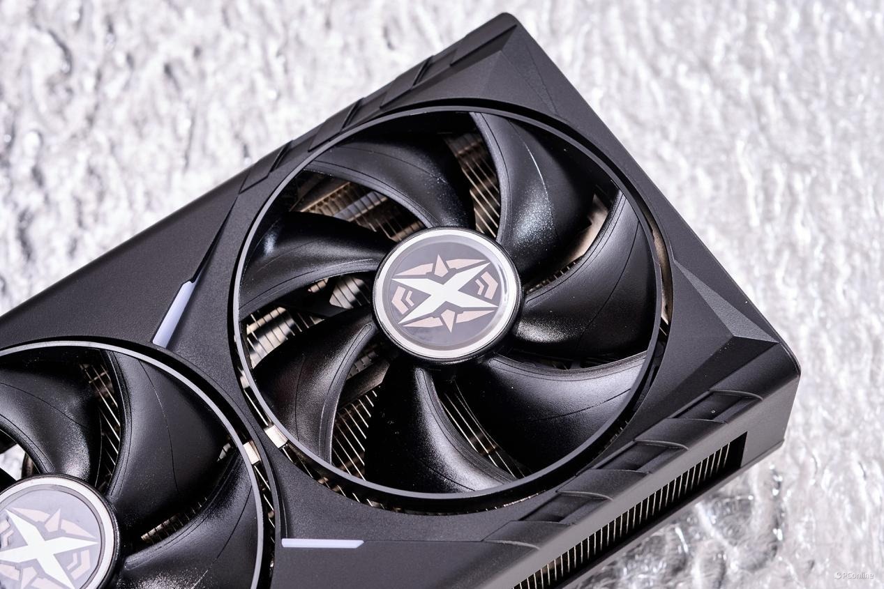 每一张非公显卡都有独特的散热系统,这张耕升RTX 5070 Ti 炫光 超OC的散热器取自主题,名为“炫之黑曜石”,目前已经进化到第三代,而扇叶则被命名为“炫风之刃”。