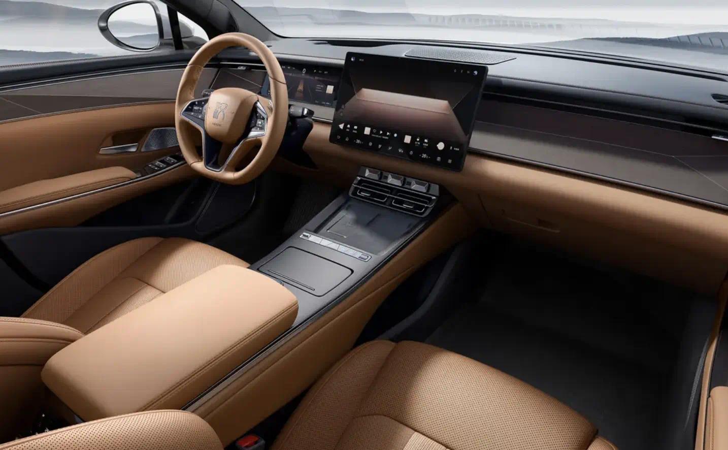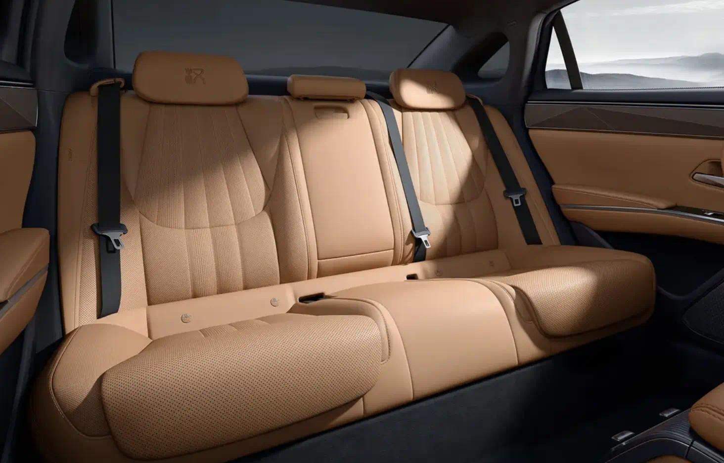 车内同样亮点十足。悬浮式中控屏与液晶仪表组合,操作便捷。中央岛台保留部分物理按键,方便常用功能操作。内饰提供棕色和白色选择,大量软性材质包裹,首次应用竹木饰板融合切割饰面,打造中式豪华氛围。真皮座椅舒适,前排具备多向电动调节、加热、通风和按摩功能,后排有老板键与触控面板。四个门窗采用双层玻璃,提升车内静谧性。配置上,车载冷暖冰箱、香氛系统、前排手机无线充电、丹拿音响以及天神之眼智驾系统等一应俱全。