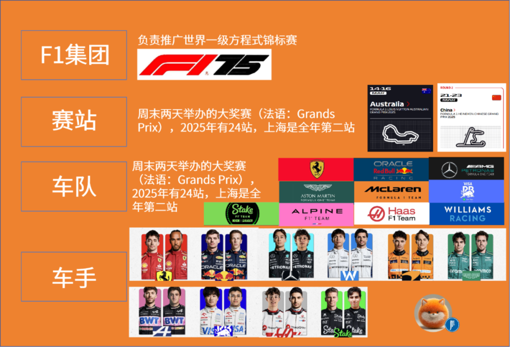 F1赛站(Grand Prix):负责单场分站赛事的运营,比如这次的上海站,还有上周的澳大利亚站。