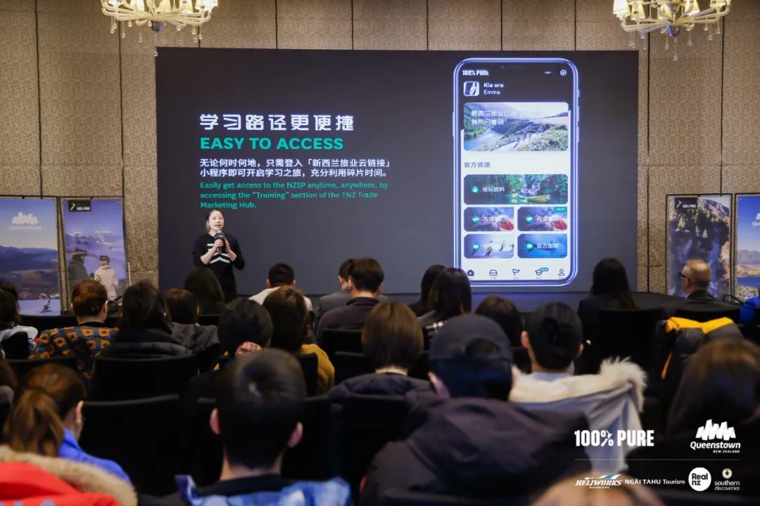 同时,这也是新西兰旅游局全新版“100%纯净新西兰旅游专家”计划小程序的一次发布会。新西兰旅游局活动及培训经理Emma Zhou对该项计划的新亮点和近期推广作了详细说明。