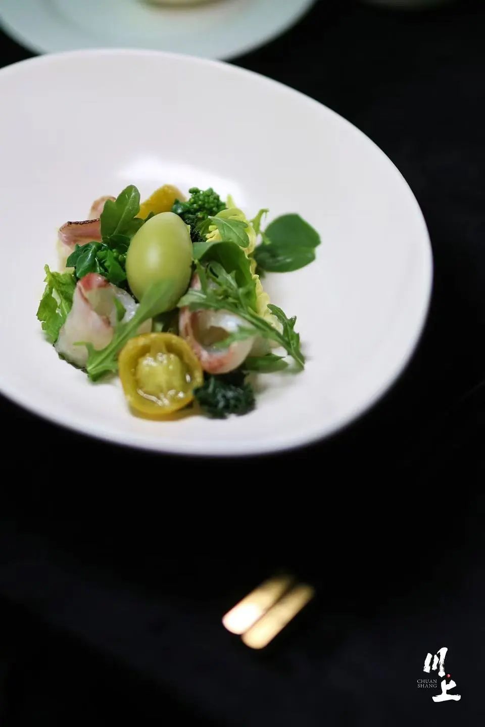 接下来的一道头盘是:春橙金鲷配春菜沙拉。