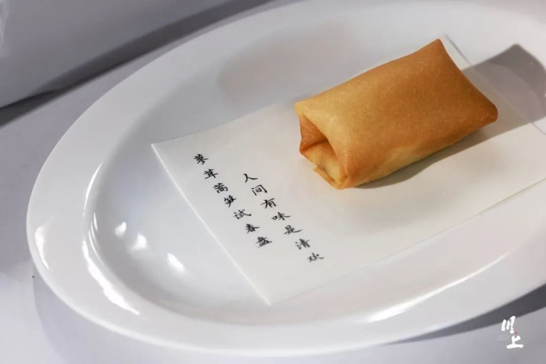 继续下一道菜:藜蒿香干空气春卷。