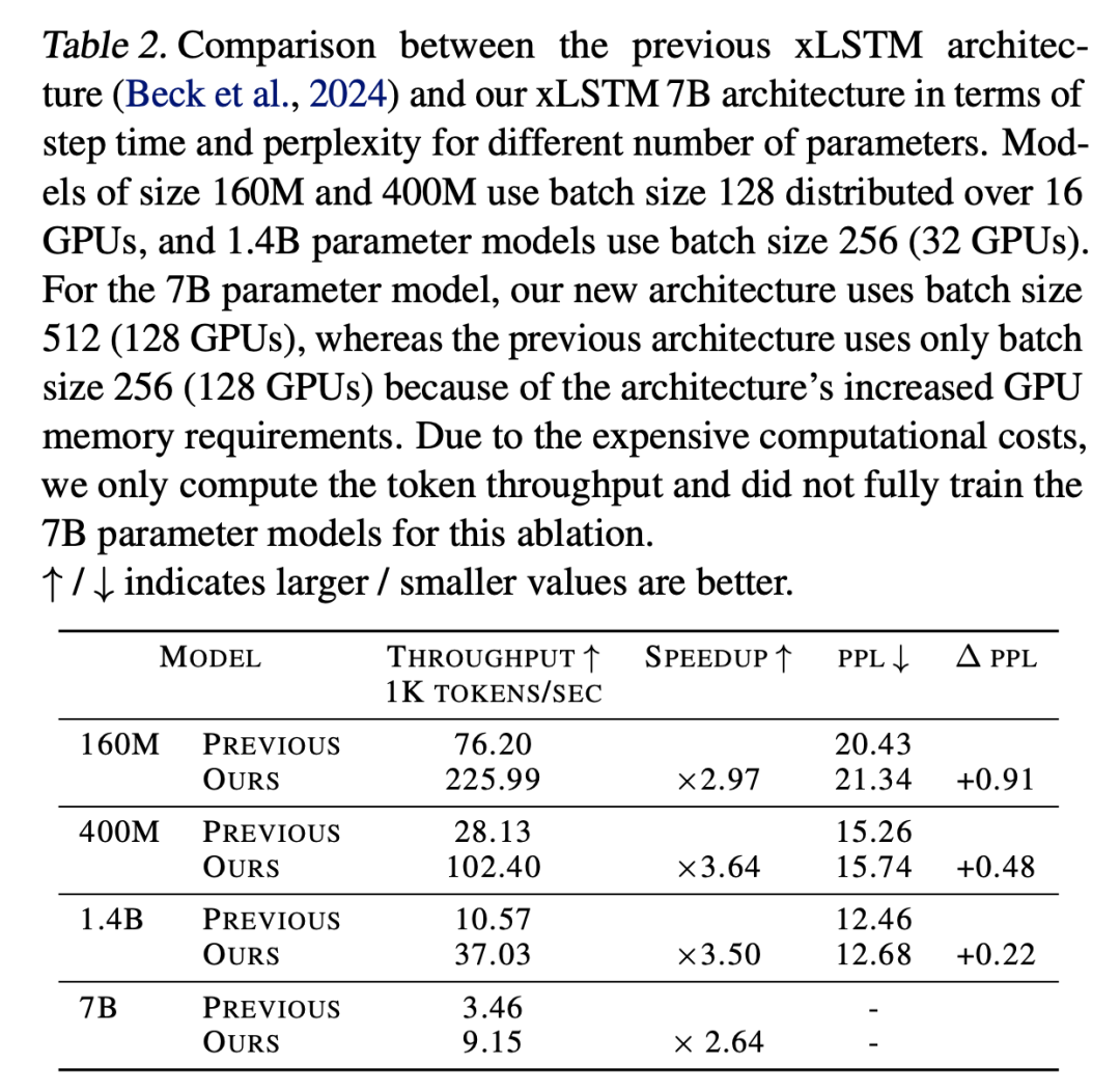 然而,xLSTM 在扩展至更大参数规模时存在限制,推理速度和效率具体如何也没做系统测评。