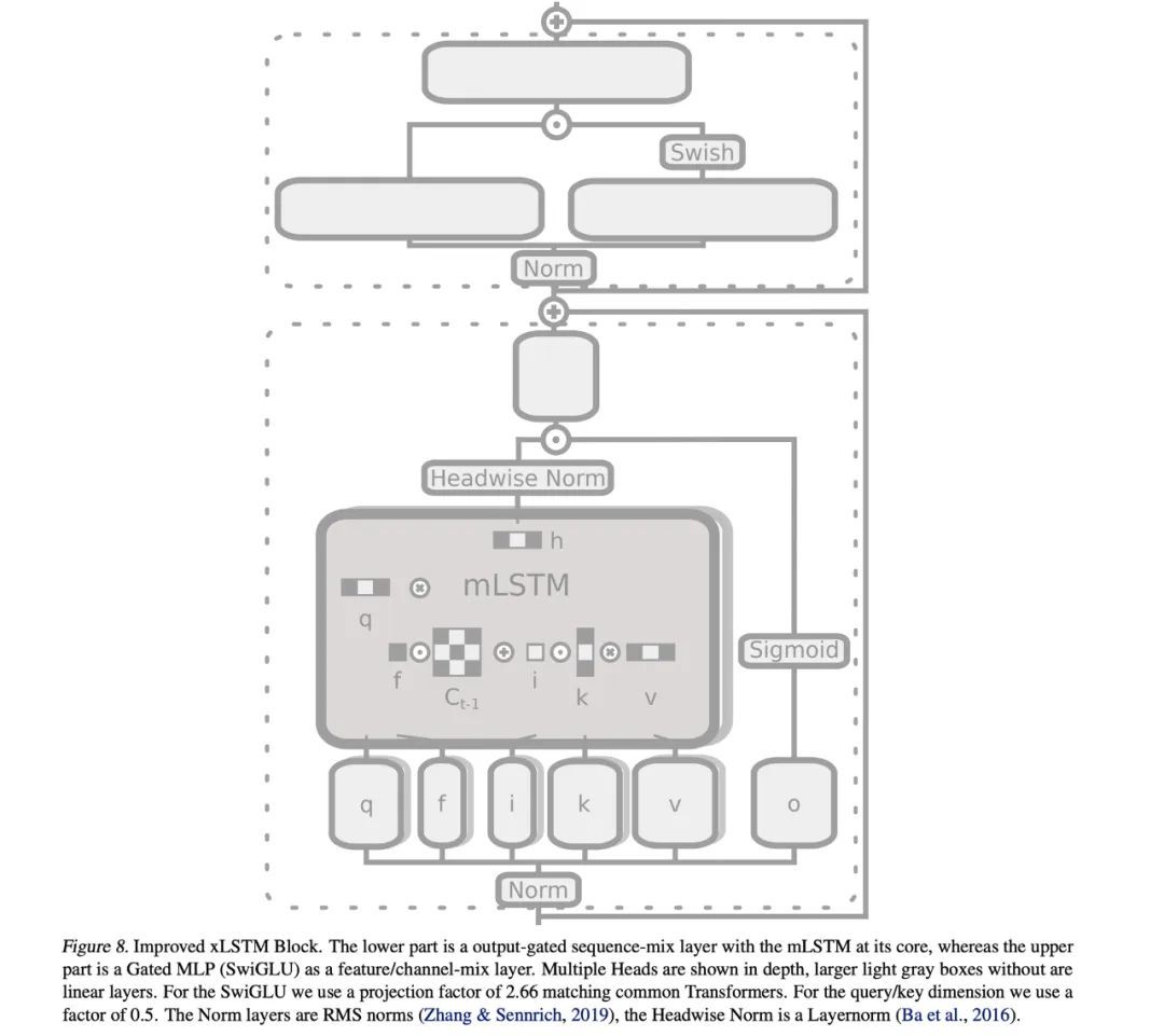 其中,采用 Transformer 架构的模型虽然占据了主流,但在输入序列长度增加时,计算量会呈二次方增长。因此,自上个世纪 90 年代兴起的 LSTM 卷土重来,它的提出者和奠基者 Sepp Hochreiter 在去年 5 月推出了 xLSTM,将 LSTM 扩展到数十亿参数,成为 Transformer 的有力替代品,提供了与序列长度线性相关的计算扩展和稳定的内存占用。