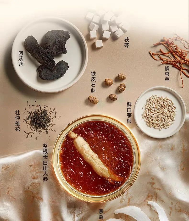 据燕之屋官网介绍,“总裁碗燕”的不同之处在于,其与中国药科大学联合开发,以古籍名方为依据,精准配伍,其中除了燕窝之外,还添加了铁皮石斛、长白山人参、蛹虫草、茯苓、肉苁蓉、杜仲雄花、鲜白茅根等原料。