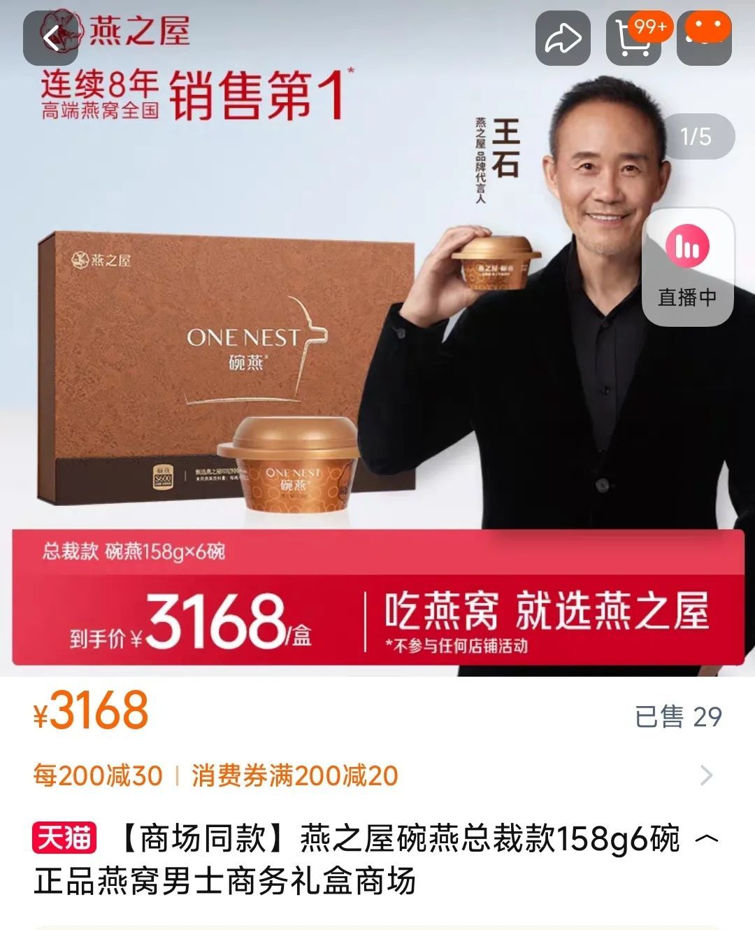在其官方旗舰店中,“总裁燕窝”显示已售29件。