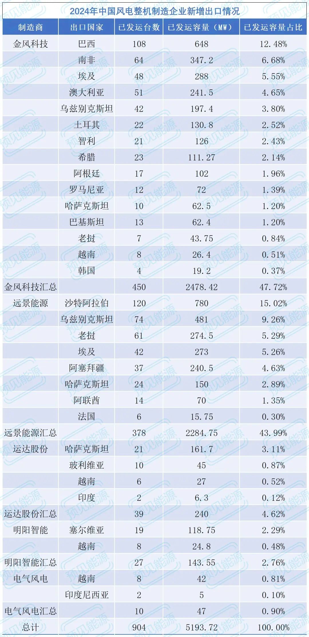 在这场出口热潮中,金风科技表现突出,出口容量占比近一半,成为推动中国风电出口增长的重要力量。