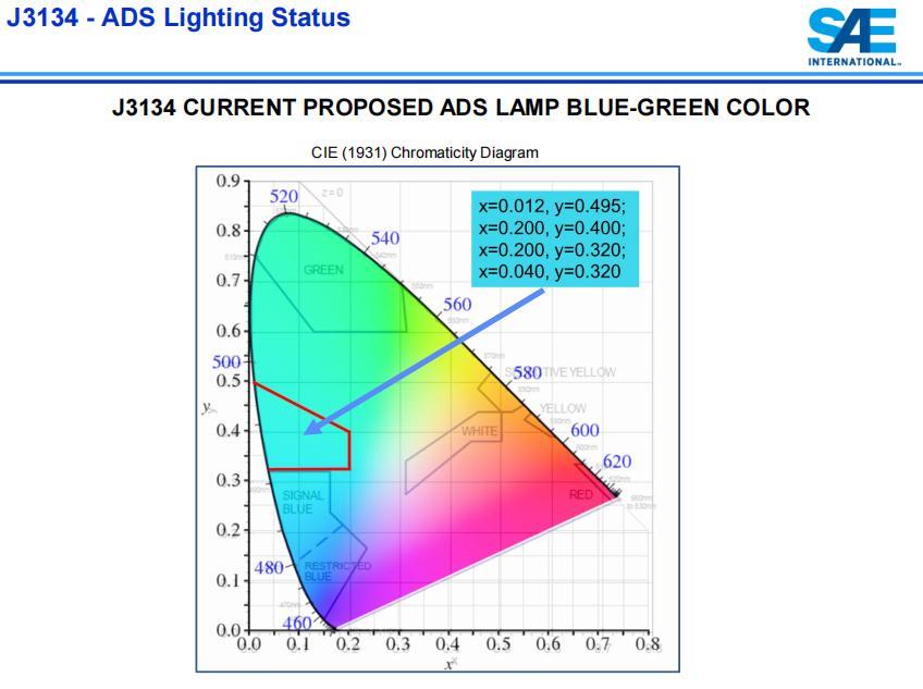 在一步步的学术讨论中,SAE 最终在 2019 年推出了 J3134 推荐性技术标准,屏幕方案被放弃,将智驾提示灯确定为蓝绿色。
