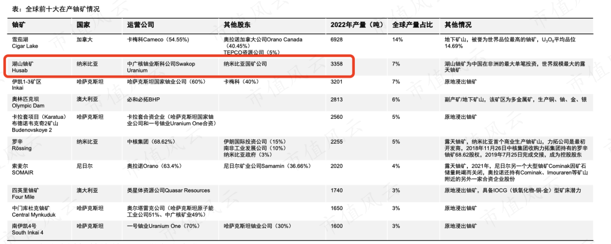 其中纳米比亚Husab矿是全球第二大铀矿。