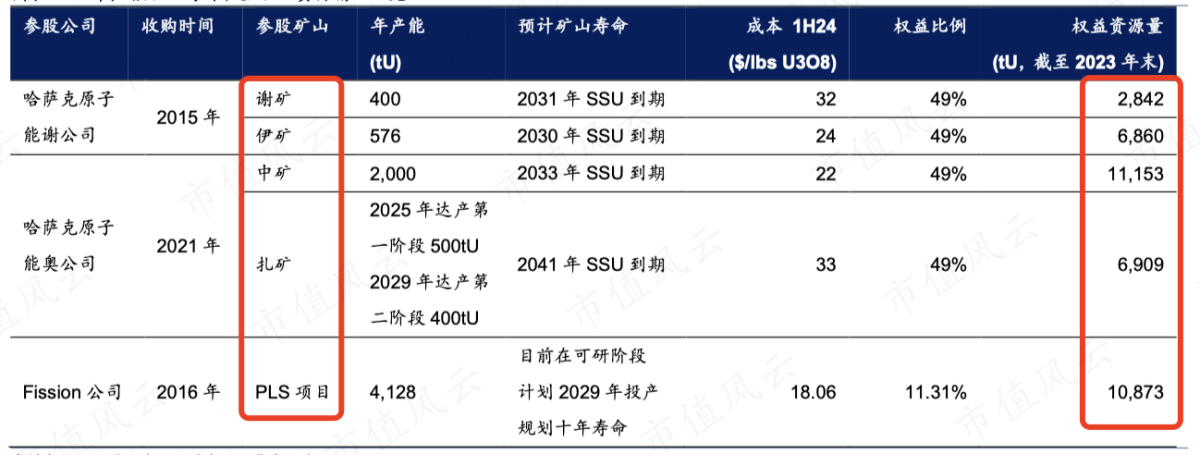 (3)2021年收购哈萨克斯坦奥尔塔雷克公司49%股权,并获得下辖两座在运铀矿49%的天然铀产品包销权。